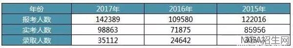 從近三年招錄人數(shù)分析,報(bào)考人數(shù)大致以2萬左右遞增,實(shí)考人數(shù)緊跟上升。報(bào)考熱度可謂是非常高了。從報(bào)考趨勢(shì)可以看出,報(bào)考人數(shù)逐年上漲,MBA等管理類聯(lián)考報(bào)考項(xiàng)目熱度不減。