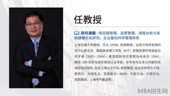 上海交大安泰經濟與管理學院教授,安泰經濟與管理學院院長助理,運營管理課程責任教授,國家級精品課程主講教授,EMBA項目主任,上海交通大學-麻省理工學院(MIT)中國全球運營領袖項目(China Leaders of Global Operations)聯合學術主任。