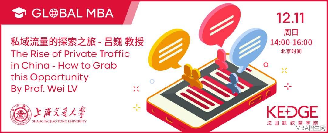 關于上述話題,上海交大-KEDGE Global MBA項目邀請到上海交通大學呂巍教授給大家帶來“私域流量的探索之旅”。