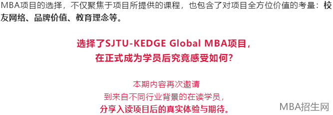 學員之聲 | 拓寬思維廣度?走出舒適圈?聆聽來自不同行業(yè)的MBA學員選擇上海交大-KEDGE Global MBA項目的N種理由 文  /MBA招生網(wǎng)2023-02-03 19:00:00