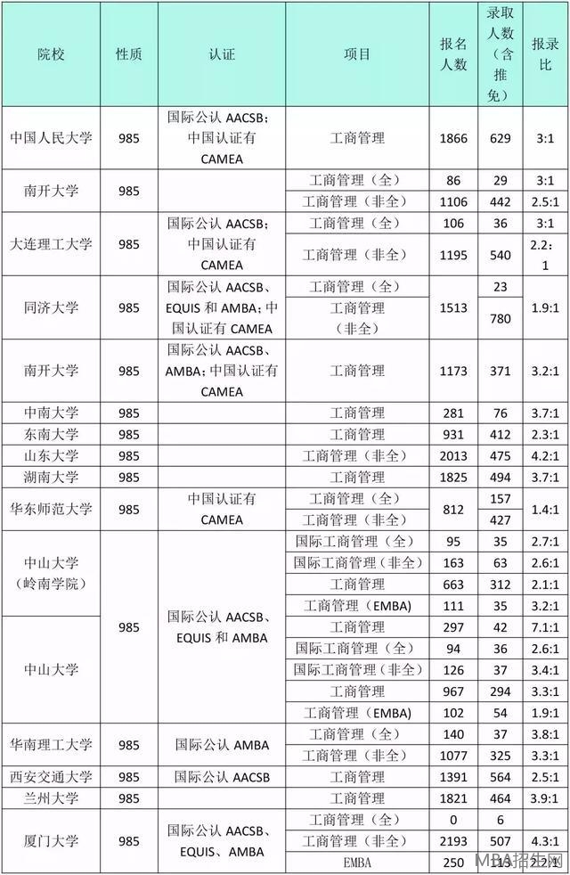 昨天2019年研究生考試正式開始報名,我們來看看2018年部分名校的MBA報錄比,為自己選擇MBA院校增加一點參考資料。