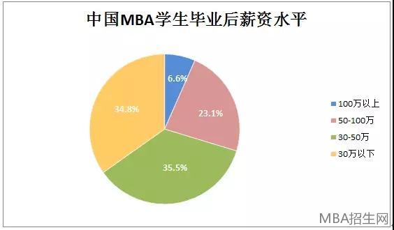 據(jù)不完全統(tǒng)計(jì),中國(guó)MBA學(xué)生畢業(yè)后有6.6%的人年薪在100萬(wàn)以上,23.1%的人年薪50萬(wàn)到100萬(wàn),35.5%的人年薪在30萬(wàn)到50萬(wàn),余下的34.8%的人年薪在30萬(wàn)以下。近些年,受市場(chǎng)的影響,中國(guó)MBA畢業(yè)生漲幅高于歐美。