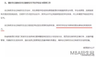 標注:《教育部辦公廳關于統籌全日制和非全日制研究生管理工作的通知》部分截圖。